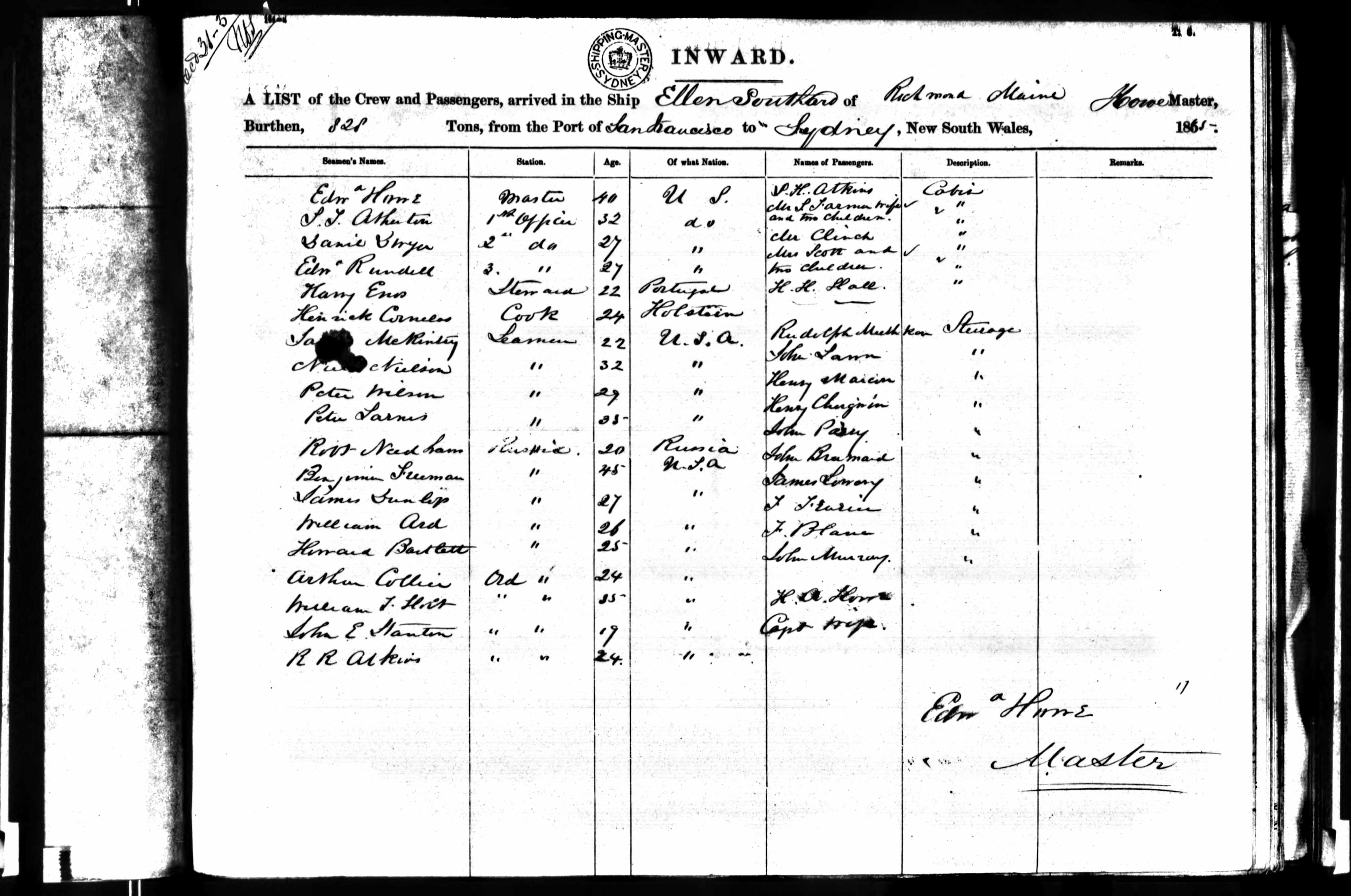 Passenger list - "Ellen Southard"