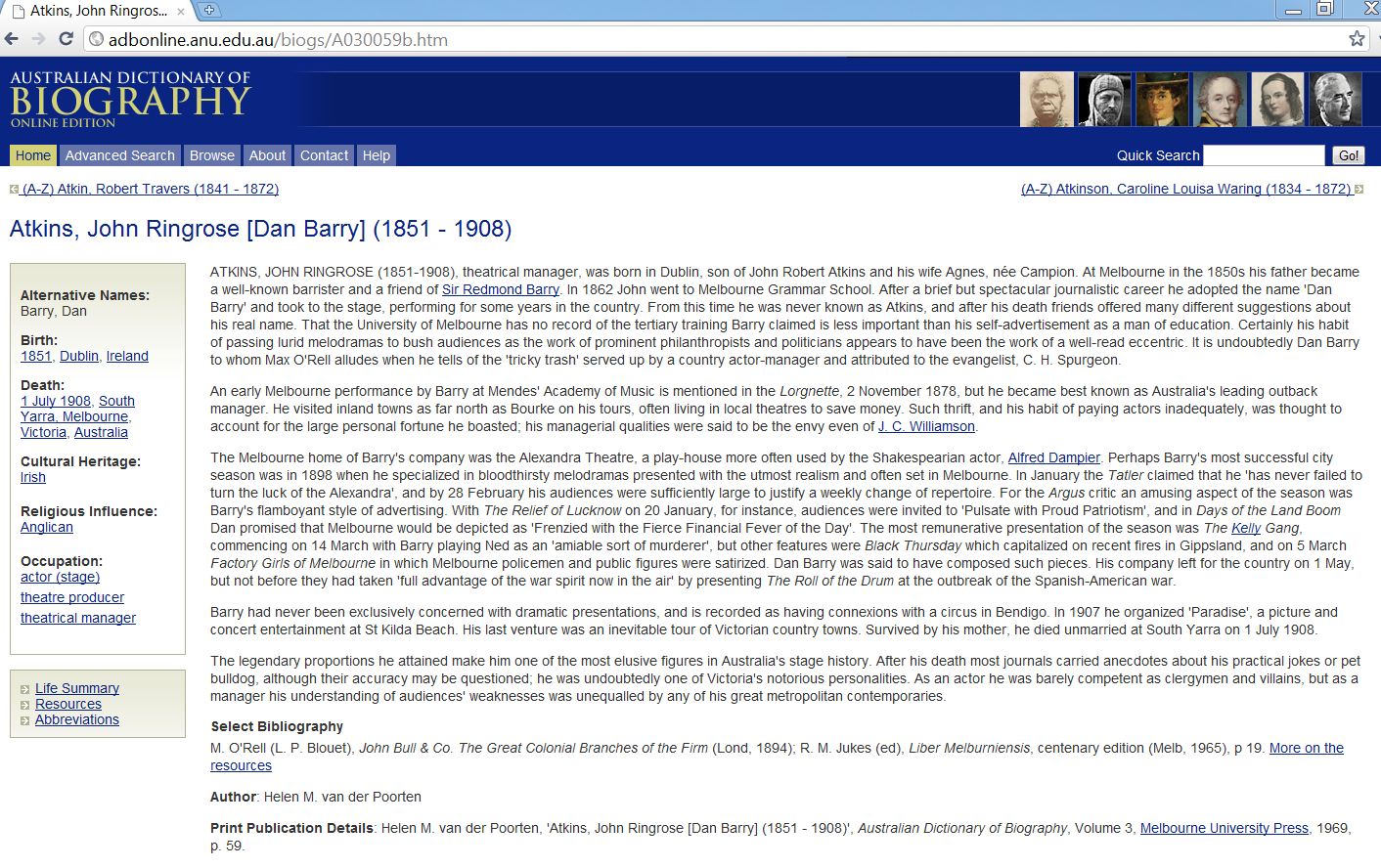 SHort history from Aust Dictionary of Biography
