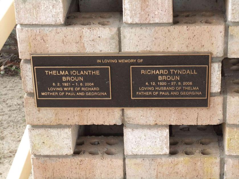 Richard & Thelma Broun memorial plaques, Beverley Cemetery WA