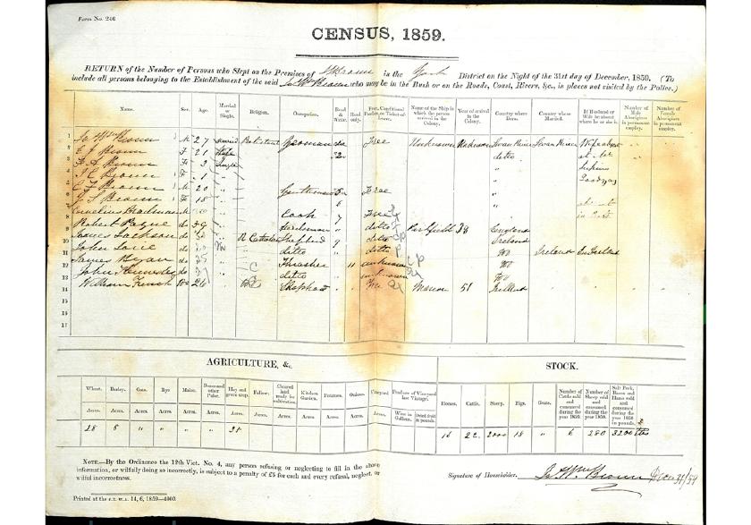 JW Broun; 1859 Census