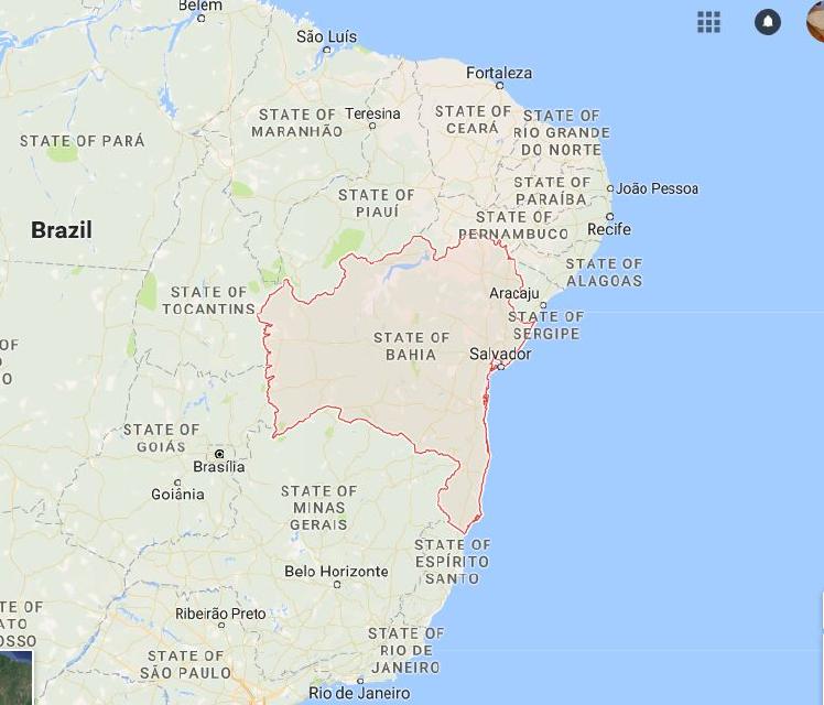 Bahia, Brazil, first ladfall for ship wrecked Caroline Broun
