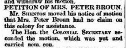Report in the Perth Inquirer of the motion not to provide any assistance to Caroline Broun.