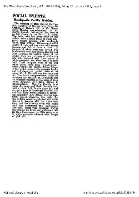 de Castilla-Moseley wedding, Westaustralian newspaper