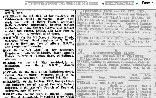 Death notice Victorian newspaper