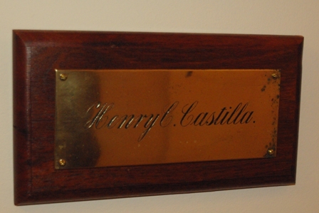 Brass Office Name Plate "Henry C. Castilla" probably from his time in the Public Works Department.