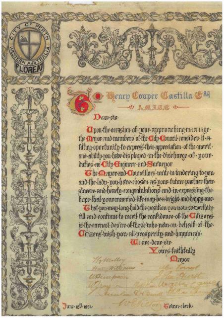Presented to Henry Couper de Castilla by Perth City Council on the occassion of his wedding