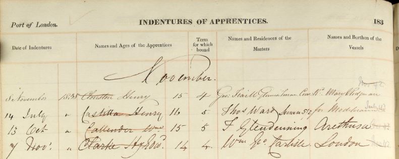 Henry Castilla apprentice listing (1838, London)