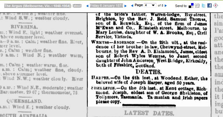 Death notice, Melbourne newspaper