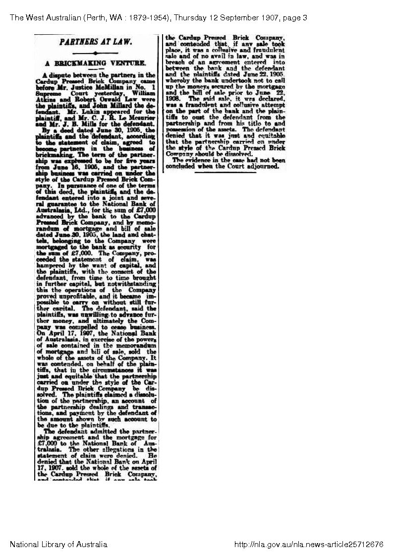 About brick making, Westaustralian 1907