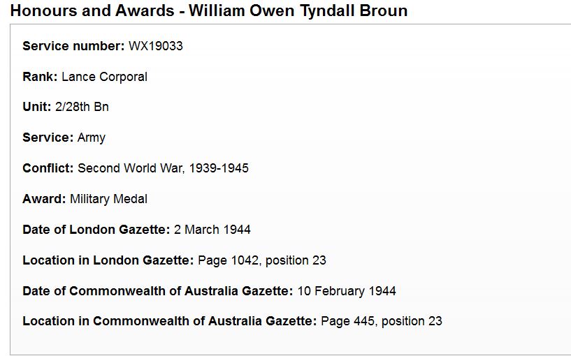 Military Medal reference; Australian War Memorial